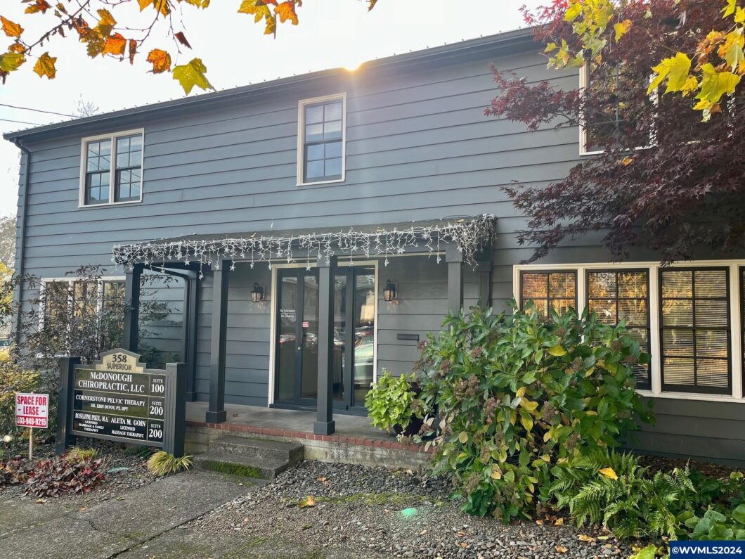 Beautiful light and bright space great for general office use, chiropractic / medical, mortgage company, law office or CPA related business and many more. Washer & Dryer hook ups on the first floor and area for breakroom. Entry with reception / waiting area, many large private offices / rooms & a few storage closets. This 2 story with restroom upstairs has 7 parking spaces & many spaces on the street for parking. Great visibility & nice South Salem location. See separate listings for other space options.